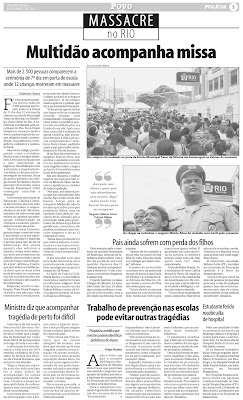 Jornal O Povo do Rio: tragédias como a de Realengo podem ser evitadas.